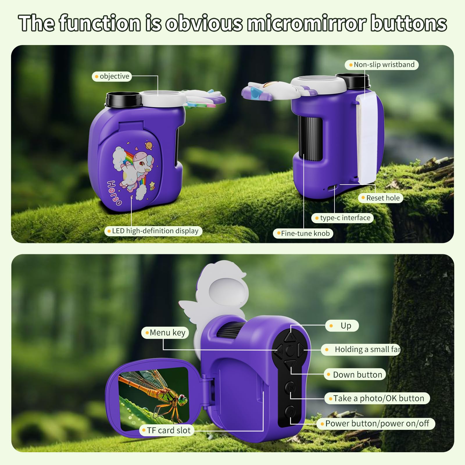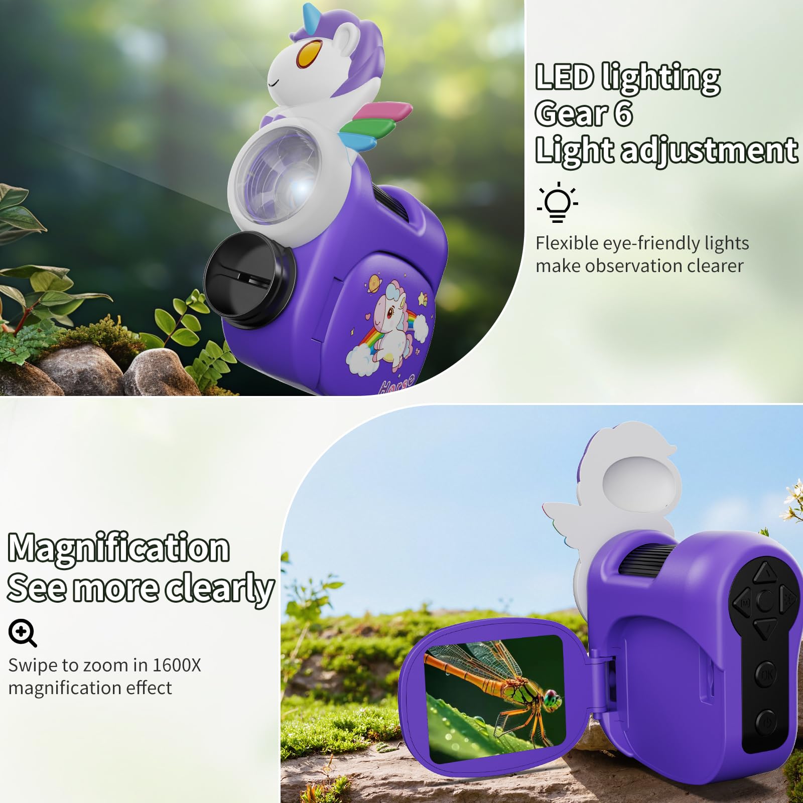 - Photo & Video Recording – Built-in HD camera allows kids to capture discoveries in photos and videos. A complete kids microscope kit and childrens microscope for school projects and science journals