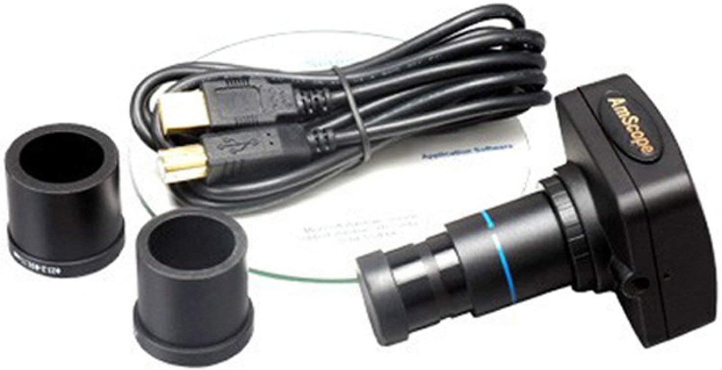 The 0.3MP digital camera has a CMOS color sensor for displaying still microscopy images and streaming live videos to a computer or projector. The camera has 40x magnification and a 0.37x reduction lens that ensures that the display has a similar field of view as the microscope eyepiece. The camera can be mounted in a C-Mount or any 23mm eye tube. The camera includes image capture and editing software that provides still image and live video capture and editing capability, including measurement functions. The software supports JPG, TIF, GIF, PSD, WMF, and BMP file formats and is compatible with Windows XP, Vista, 7, and 8; Mac OS X; and Linux. Camera drivers are compatible with Windows XP, Vista, 7, and 8; Mac OS X; and Linux. The software includes Windows APIs for native C/C++, C#, DirectShow, Twain, and LabVIEW that enable custom application development. The camera has a USB 2.0 data port (cable included).