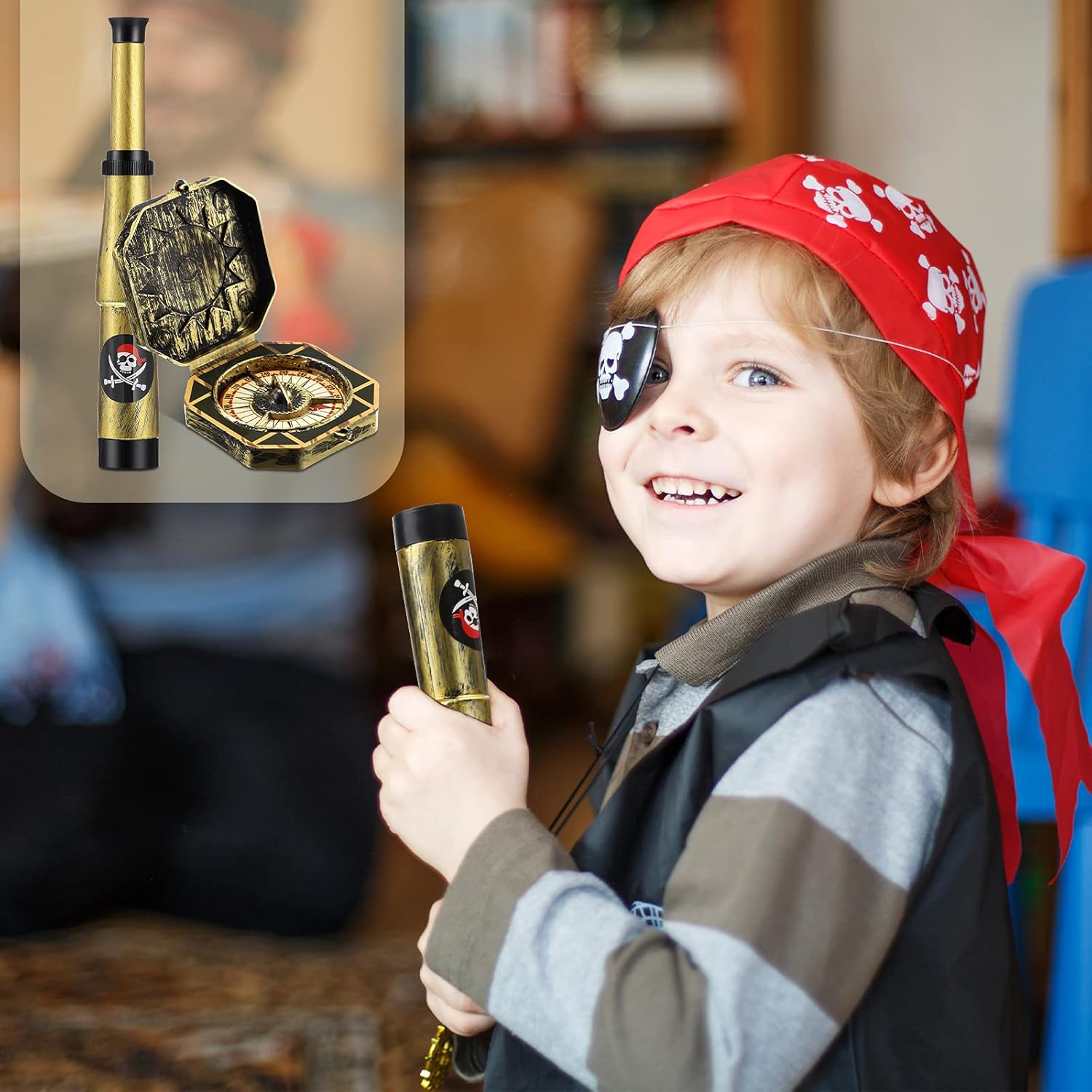 - What you will get: there are 2 pieces of pirate telescope toy ( just a toy, it can't really be applied as a telescope) and compass treasure play toys, this combination can meet your cosplay needs and make your pirate style more obvious and interesting