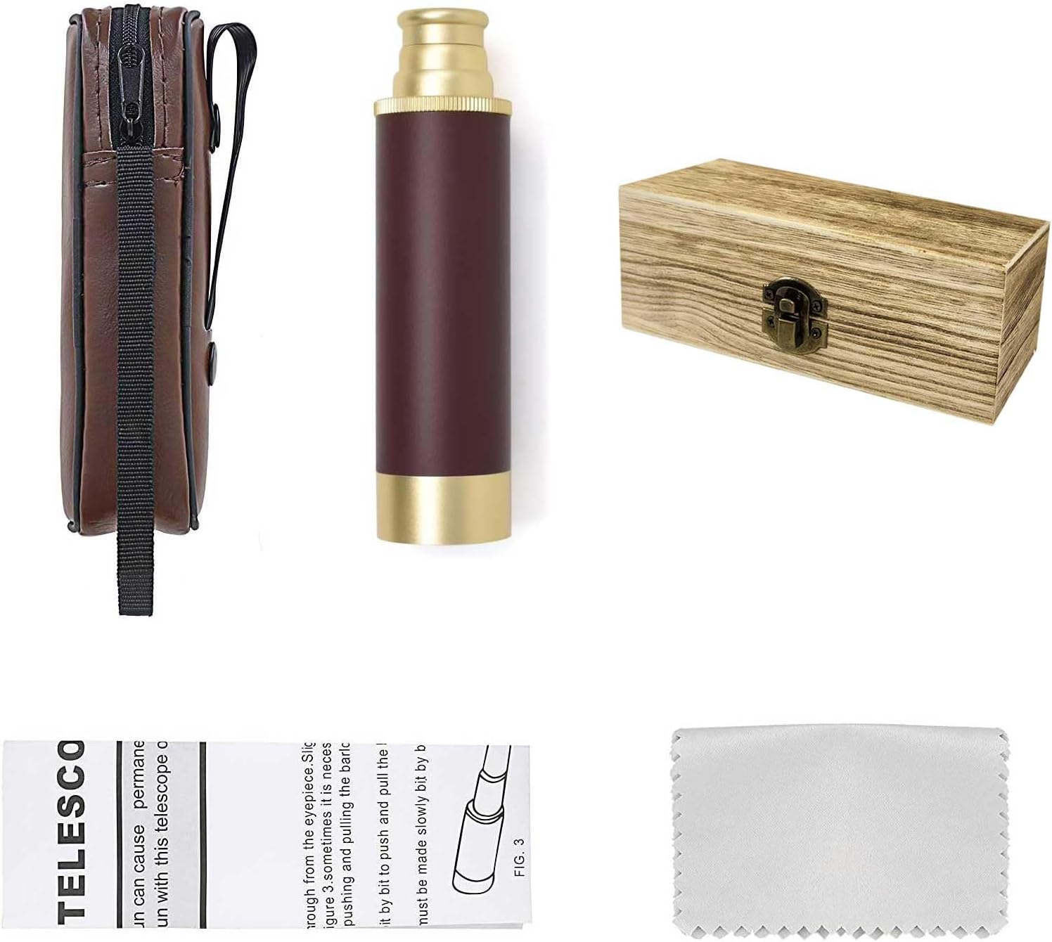 - ❤ GREAT GIFT - The brass telescope comes with a Natural wooden box and a leatherette bag, Perfect as a gift for kids to realize their captain's dream of exploring the world.